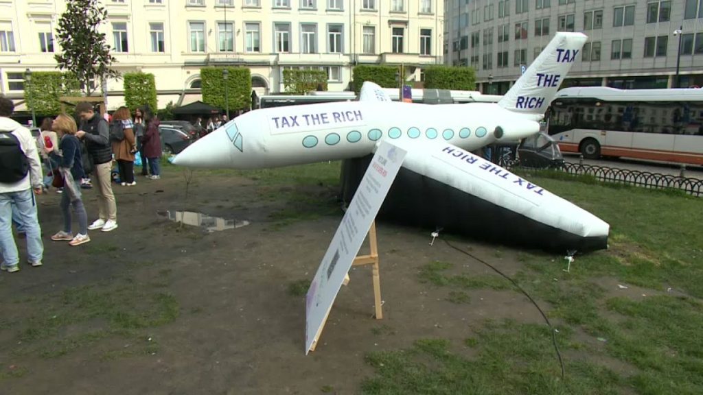 Zenginler için daha yüksek vergi talep eden göstericiler, Avrupa Parlamentosu binası önünde gelir eşitsizliğini protesto etti.